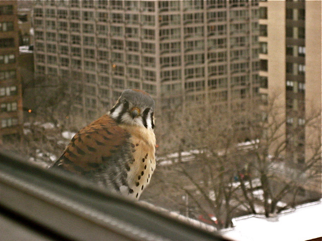 Though not of the peregrine kind, it is a falcon, nonetheless — a young, male American Kestrel, which according to the Cornell Lab of Ornithology, is “perhaps the most colorful raptor in the world.”