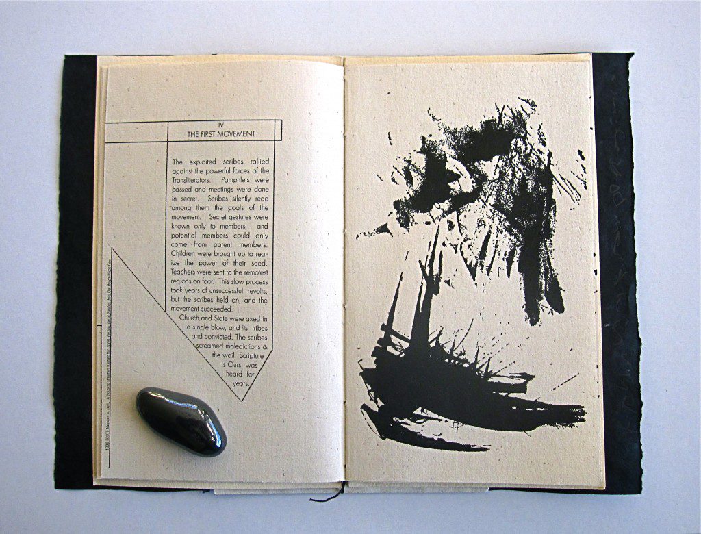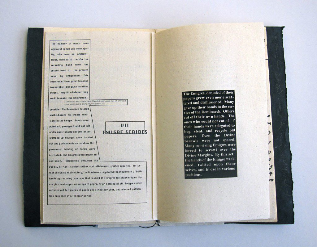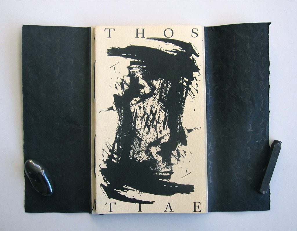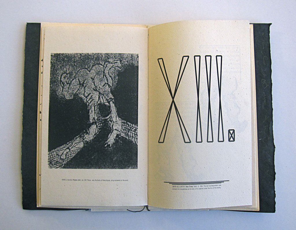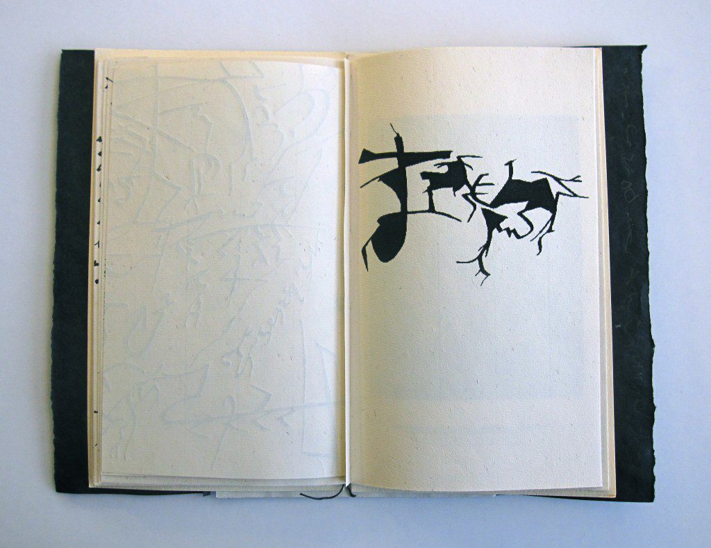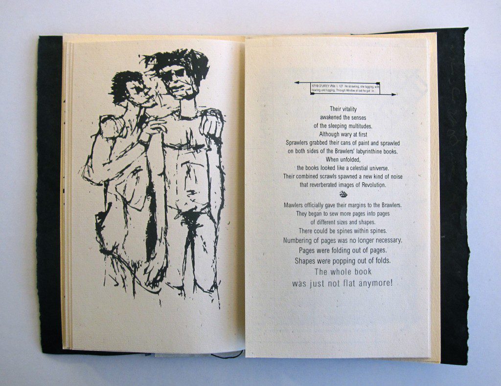 Text set in 6 pt. were taken from The Oxford English Dictionary. The polymer prints are calligraphic studies of drawings by the Turkish soldier, S. Erek, from his book, Soldier On. QuarkExpressed and printed on Gutenberg Laid. The cover is handmade abaca. © 1996.