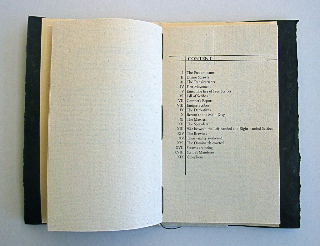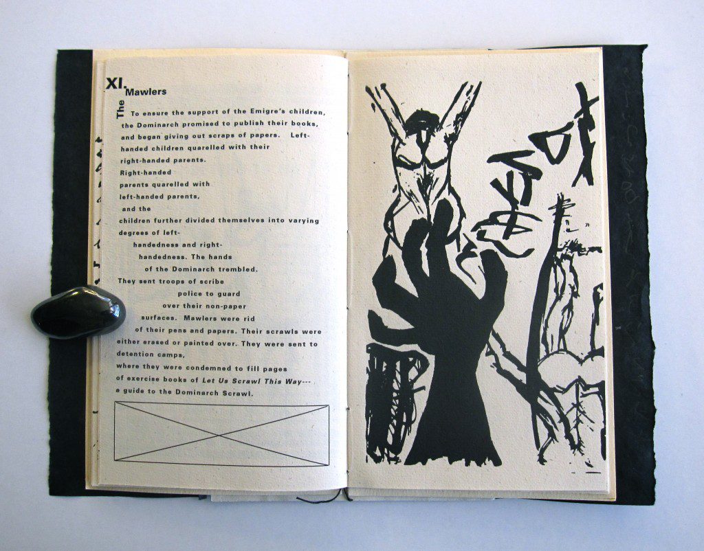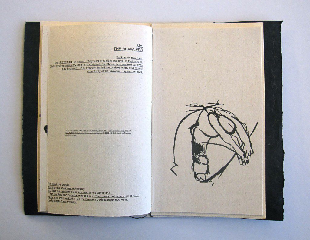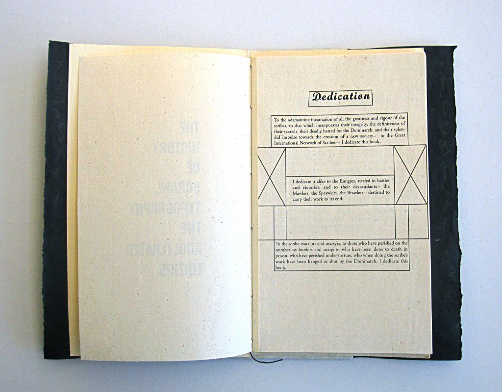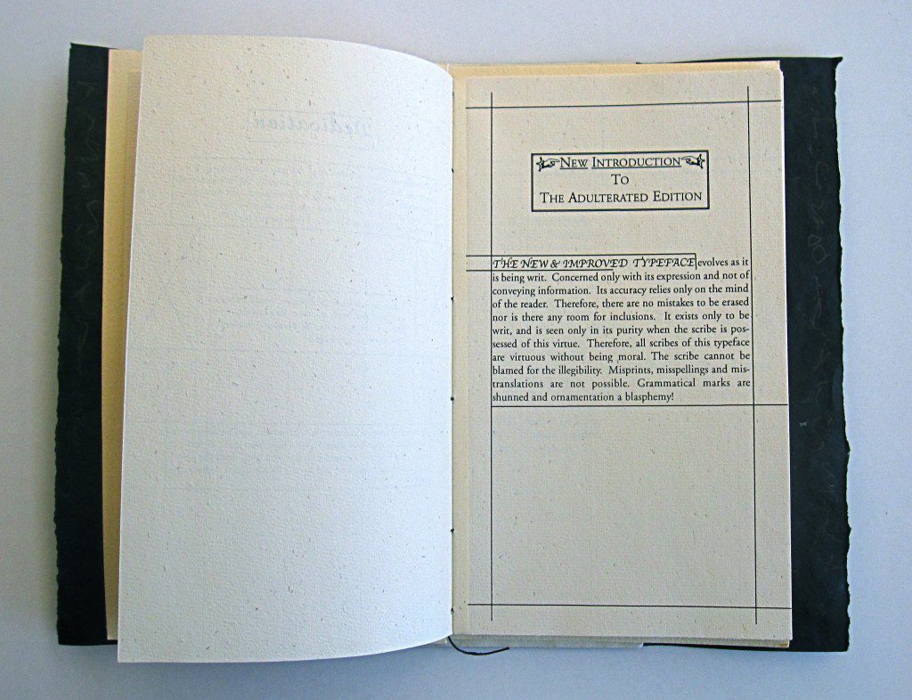 Text set in 6 pt. were taken from The Oxford English Dictionary. The polymer prints are calligraphic studies of drawings by the Turkish soldier, S. Erek, from his book, Soldier On. QuarkExpressed and printed on Gutenberg Laid. The cover is handmade abaca. © 1996.
