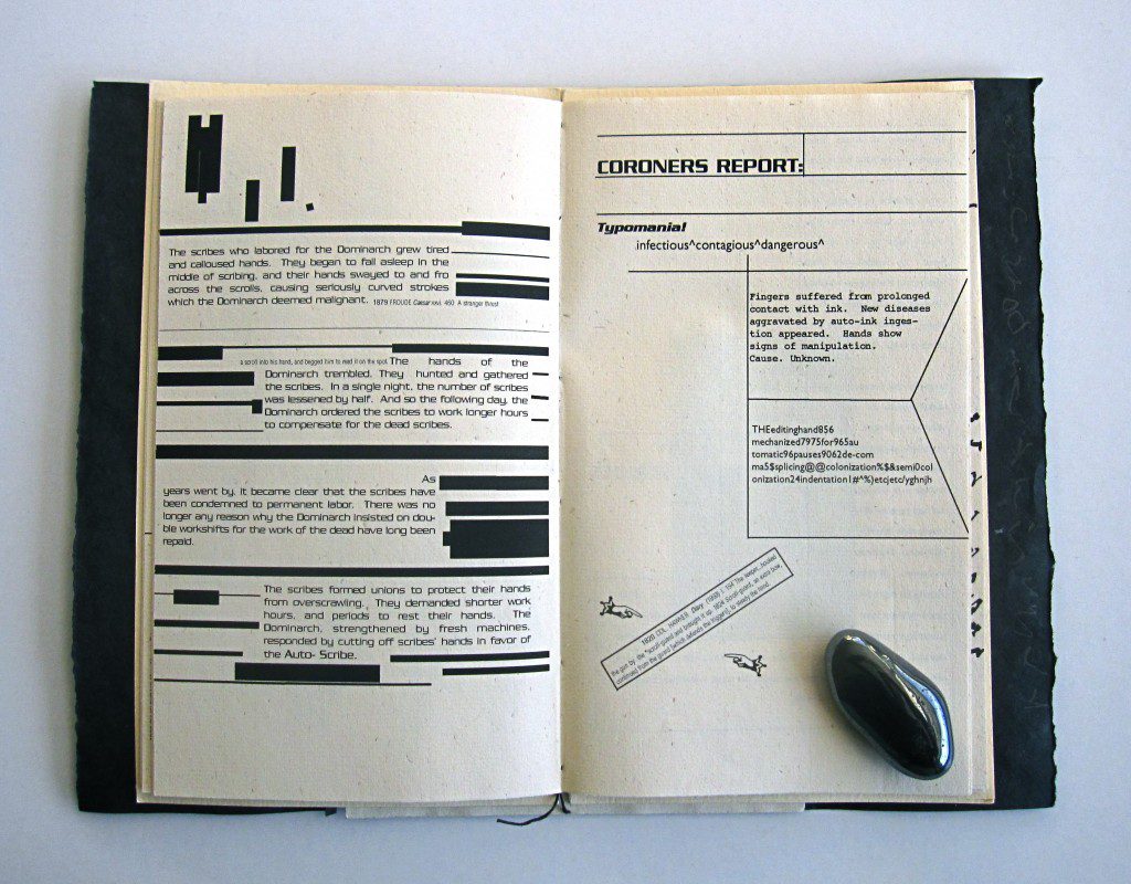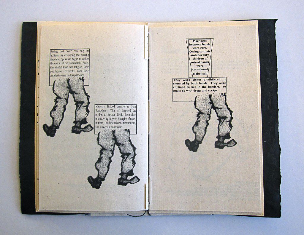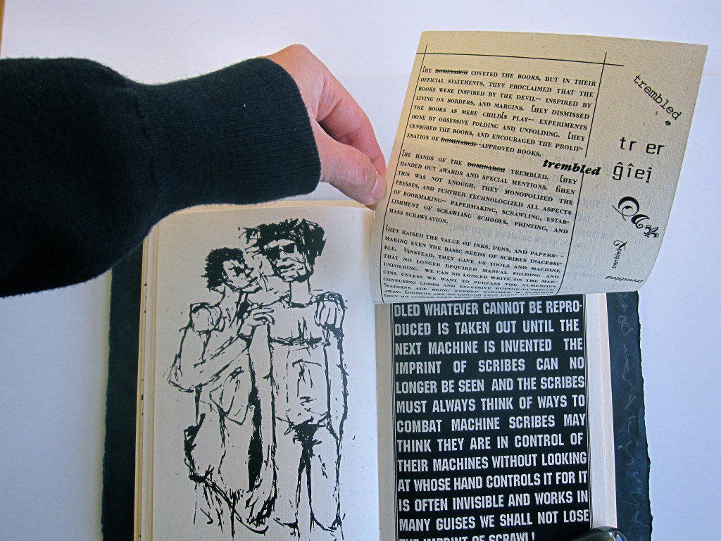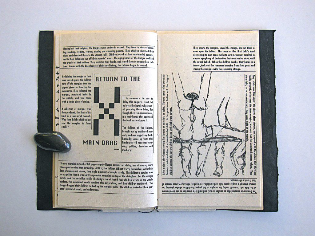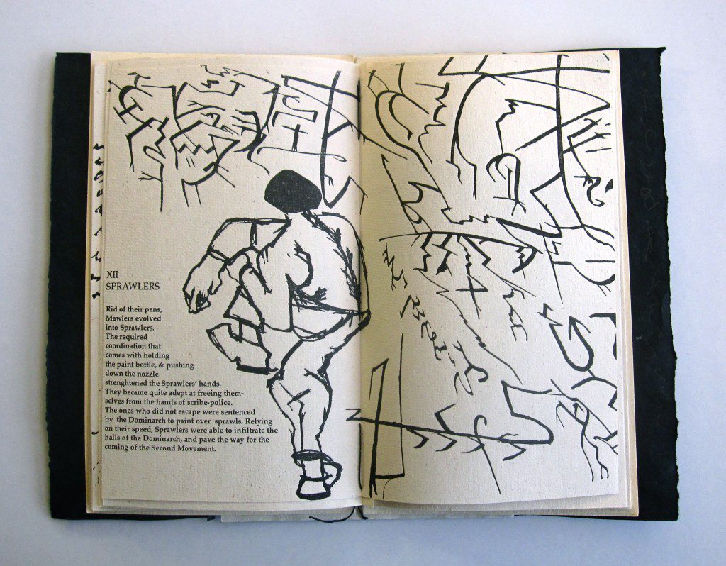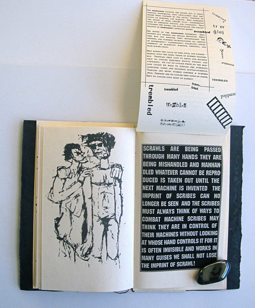 Text set in 6 pt. were taken from The Oxford English Dictionary. The polymer prints are calligraphic studies of drawings by the Turkish soldier, S. Erek, from his book, Soldier On. QuarkExpressed and printed on Gutenberg Laid. The cover is handmade abaca. © 1996.